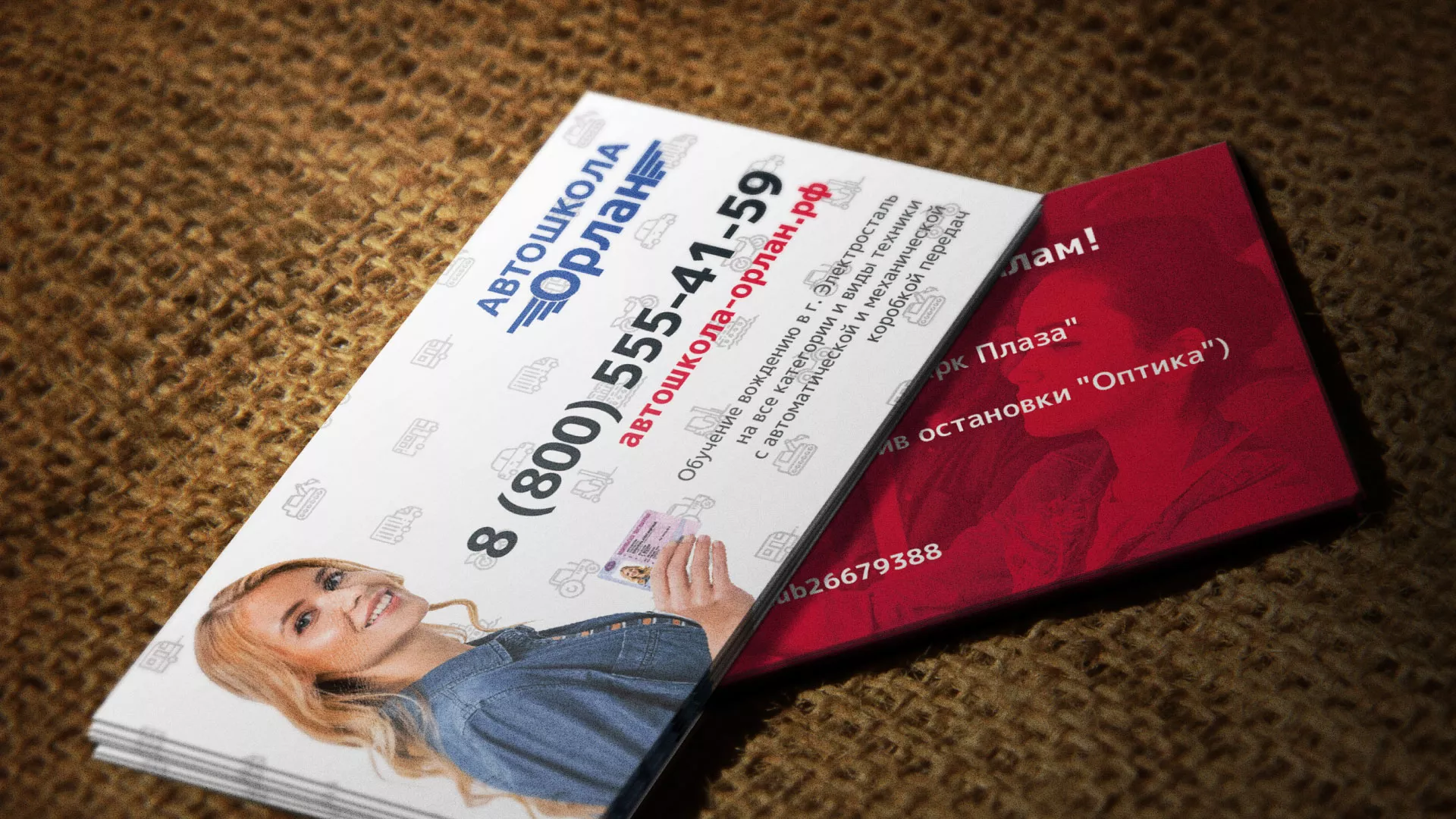 Разработка рекламных визиток автошколы «Орлан» в Сурске