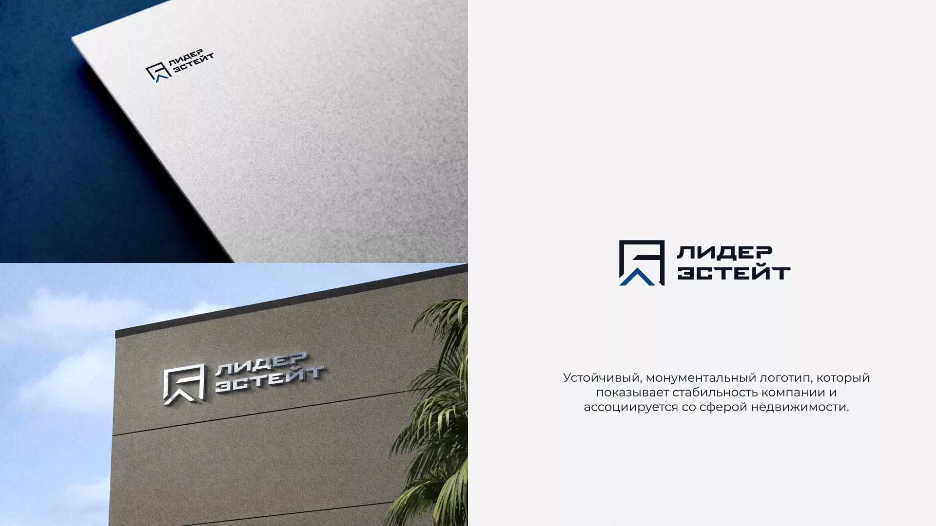 Разработка логотипа в Сурске для агентства недвижимости «Лидер Эстейт». Устойчивый, монументальный логотип, который показывает стабильность компании и ассоциируется со сферой недвижимости.